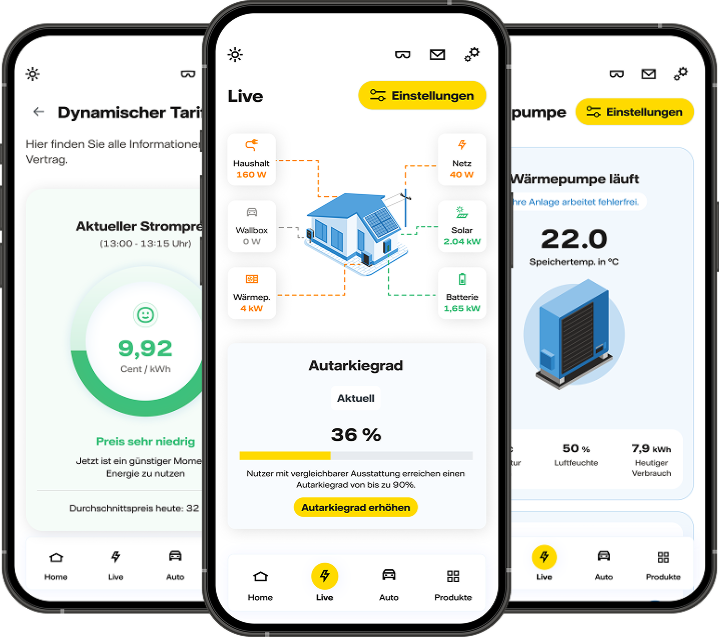 Die App überwacht Ihre PV-Anlage, Wallbox und Wärmepumpe – und informiert Sie in Echtzeit.