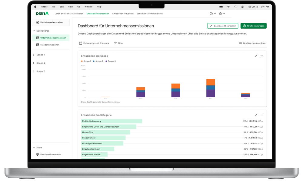 Mithilfe unseres Partners Plan A verfolgen wir einen ganzheitlichen Carbon-Management-Ansatz und unterstützen mittelständische und größere Unternehmen bei der Einhaltung komplexer Berechnungs- und Reportingstandards.