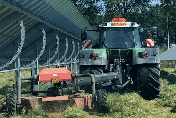 Neben der Hühnerhaltung entsteht ein weiterer Bereich für die konventionelle Landwirtschaft. Hier sind die Reihenabstände groß genug für Traktoren und die PV-Unterkonstruktionen speziell verzinkt, um Korrosion durch Düngemittel vorzubeugen.