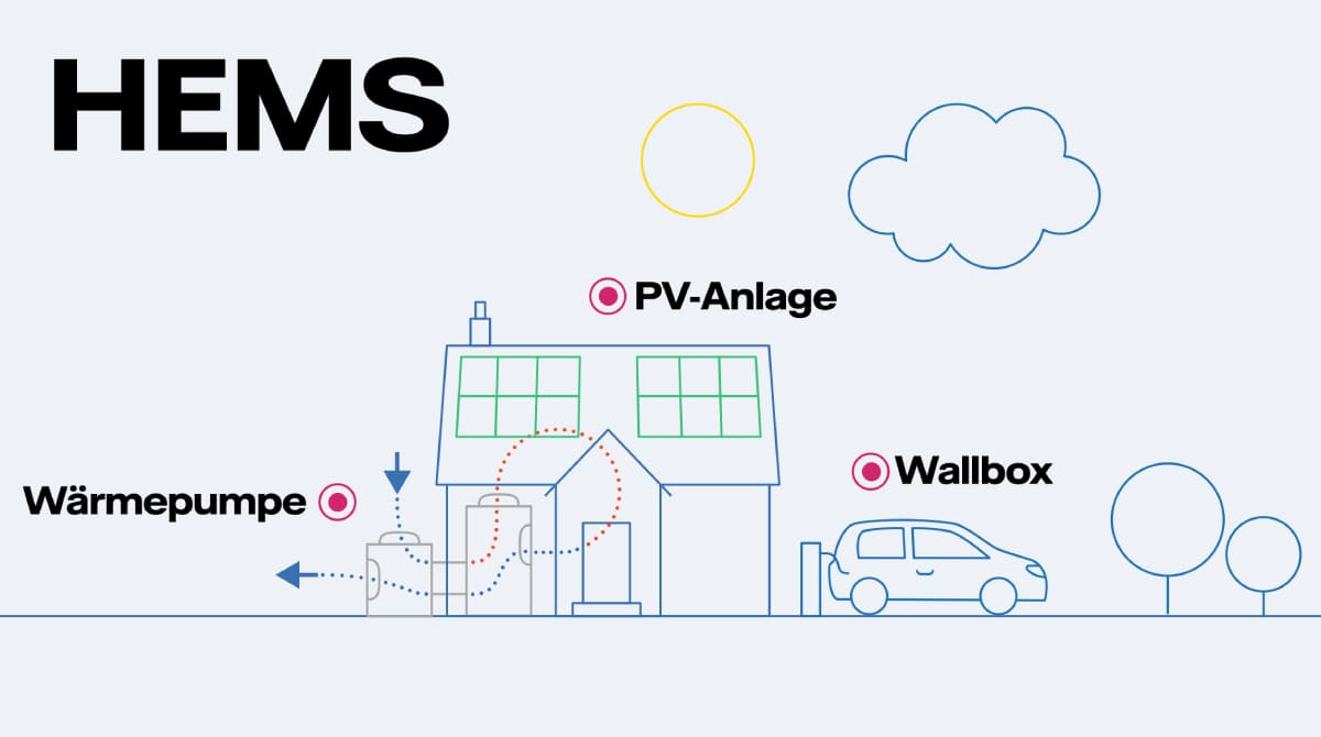 Das HEMS ist ein kleiner Computer, der die Energieflüsse überwacht und steuert, indem er mit Geräten wie einer Photovoltaikanlage, einer Wallbox oder einer Wärmepumpe verbunden ist. So kann der Eigenverbrauch von günstigem Solarstrom maximiert werden und günstiger Netzstrom dann genutzt werden, wenn die Preise niedrig sind.